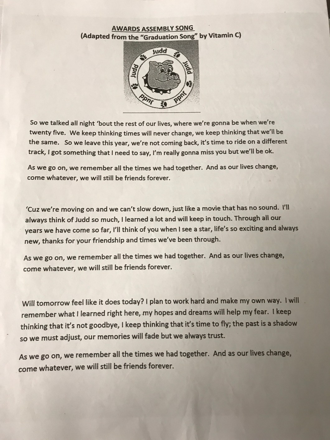 May 17, 2017 Spintoliz 5th grade Awards Assembly Song I am going to miss you 5th Grade! Looking forward to hearing your goodbye song at the awards assembly. π’ Share this: Share on Facebook (Opens in new window) Facebook Share on X (Opens in new window) X Like Loading...