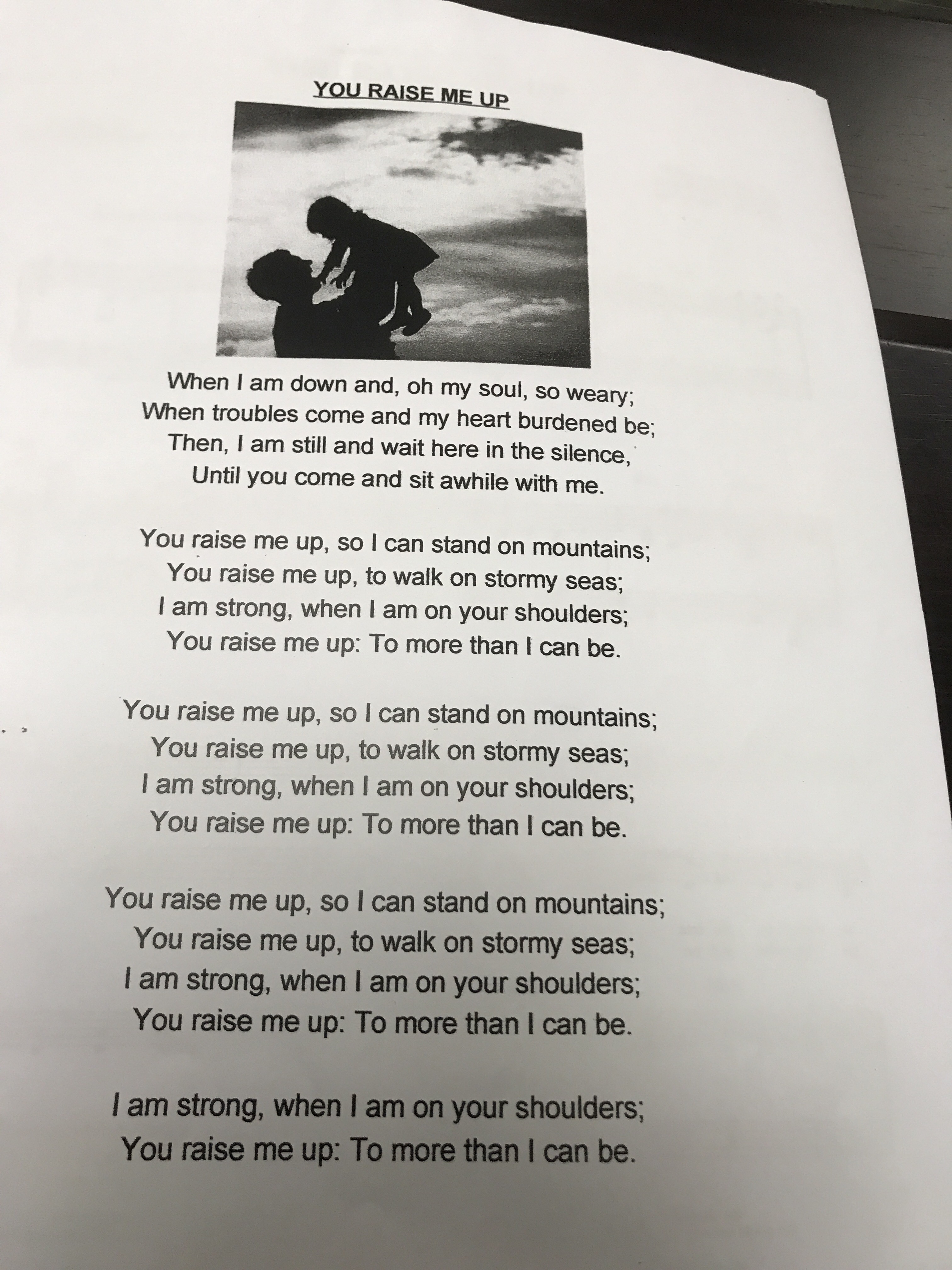Our songs are the Star Spangled Banner, America round, 50 Nifty, You Raise Me Up, and My Favorite Things.