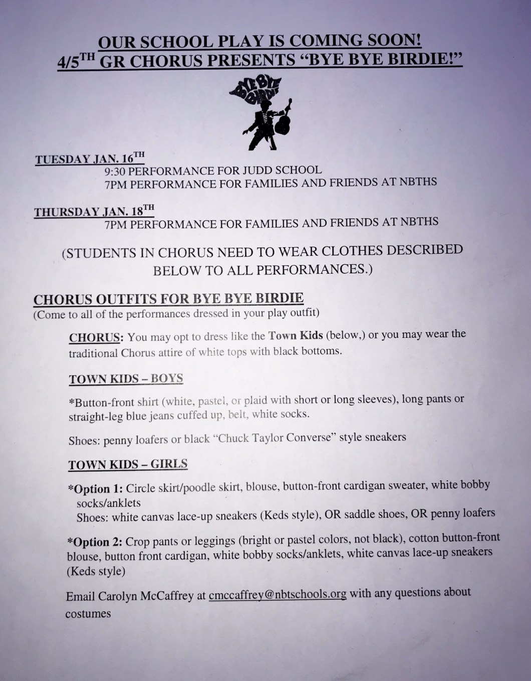 Please see information about our play coming soon! All 4/5th grade chorus students will be in the show. ❤️🎼