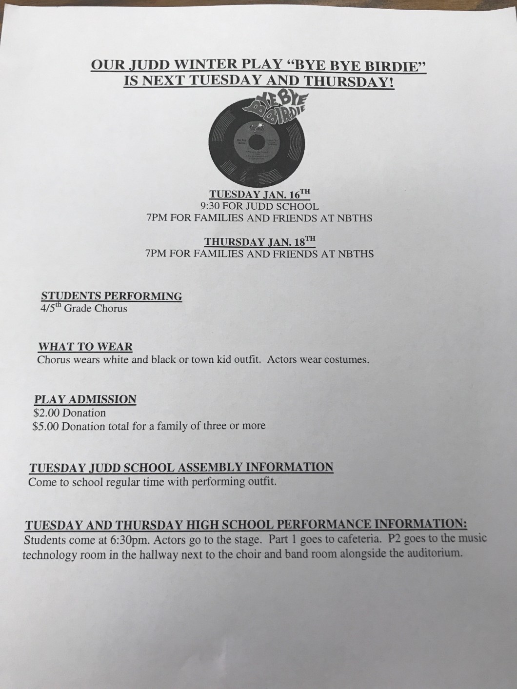 Sunday rehearsal: Actor dress rehearsal at high school from 4-8pm