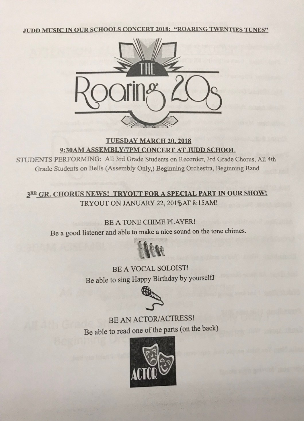 January 18, 2018 Spintoliz 3rd Grade Chorus Audition Monday @ 8:15 Share this: Share on Facebook (Opens in new window) Facebook Share on X (Opens in new window) X Like Loading...