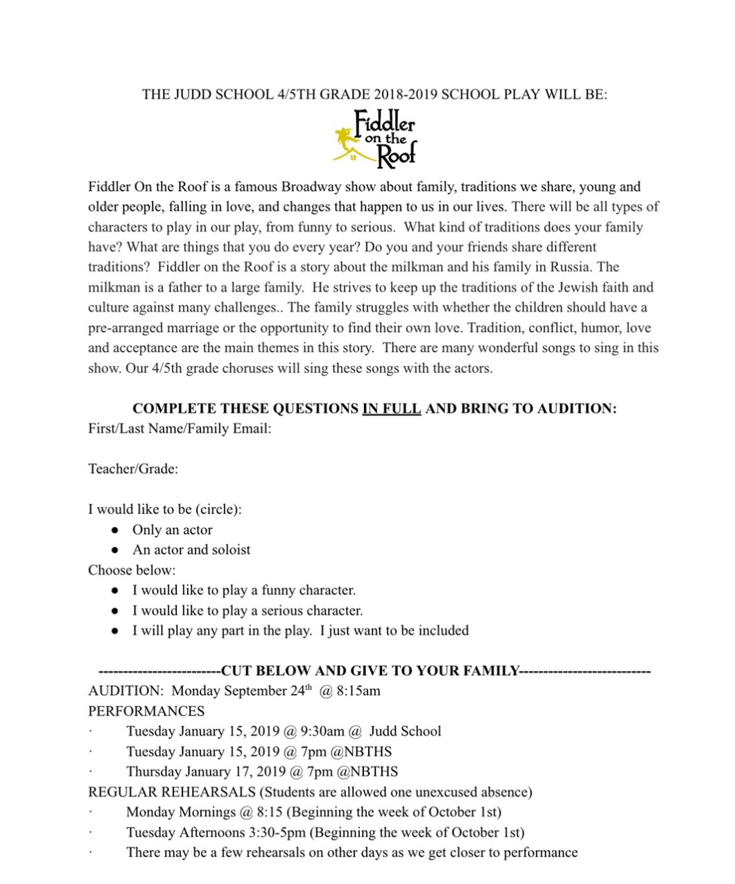 THE JUDD SCHOOL 4/5TH GRADE 2018-2019 SCHOOL PLAY WILL BE: