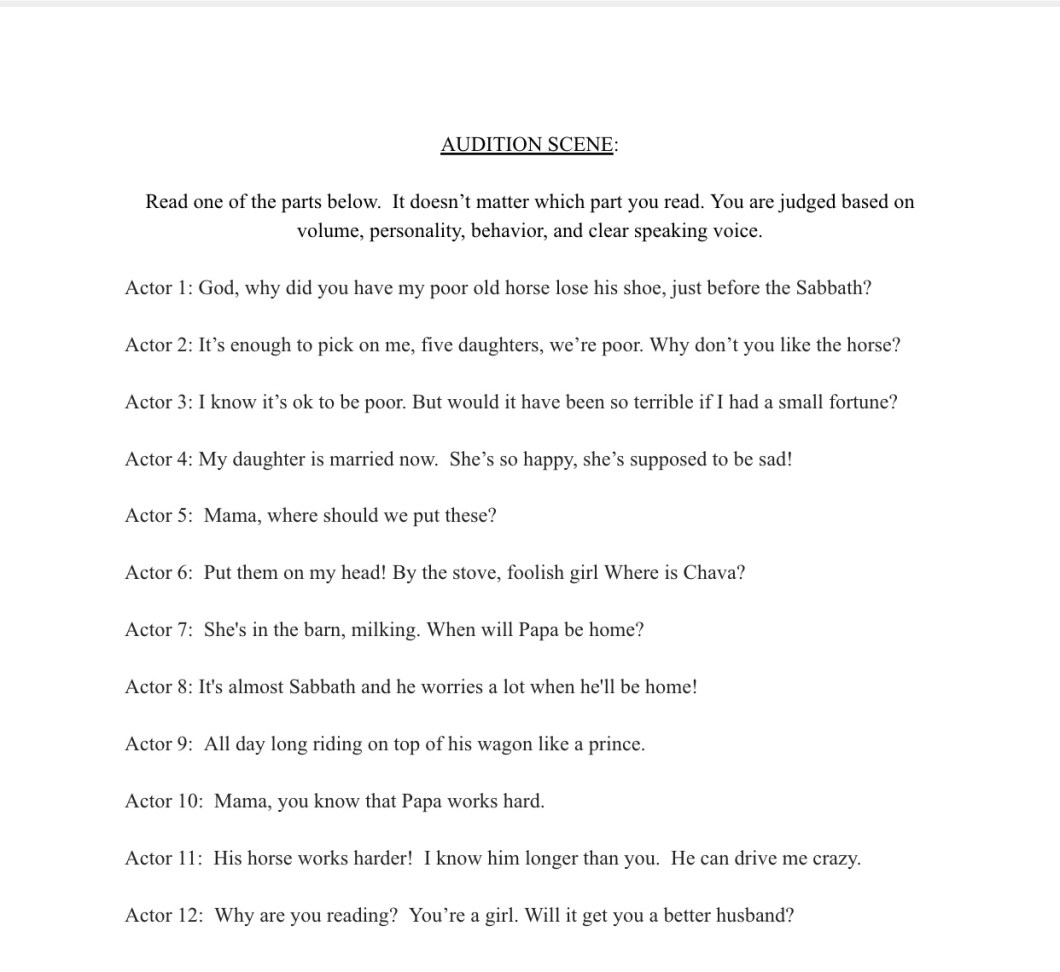 Fill out this form, practice the scene, and bring it to the audition on Monday September 24TH @ 8:15am.