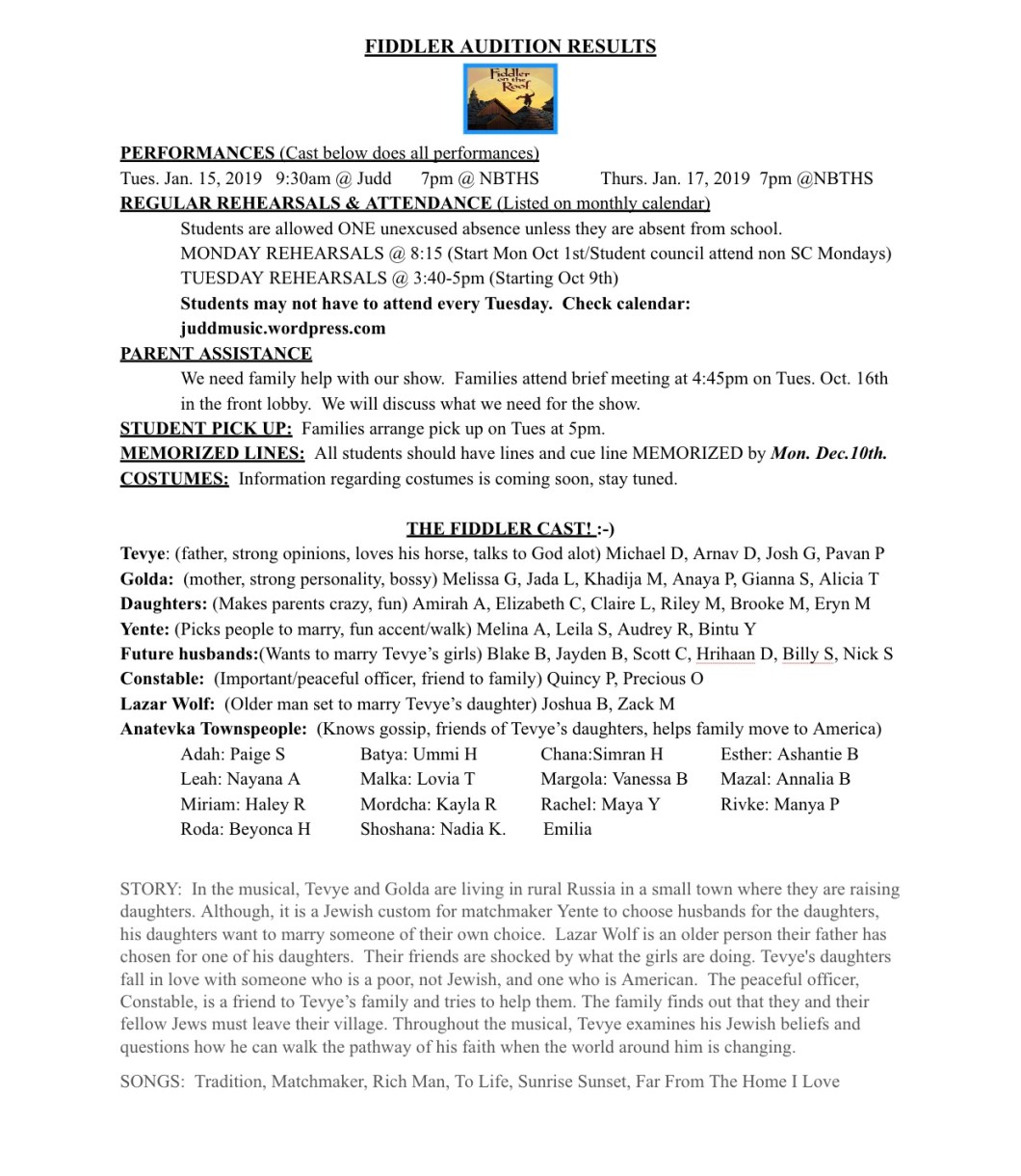 Tomorrow is our first after school rehearsal from 330-5. Families pick up students right at 5pm from the front. See you tomorrow!