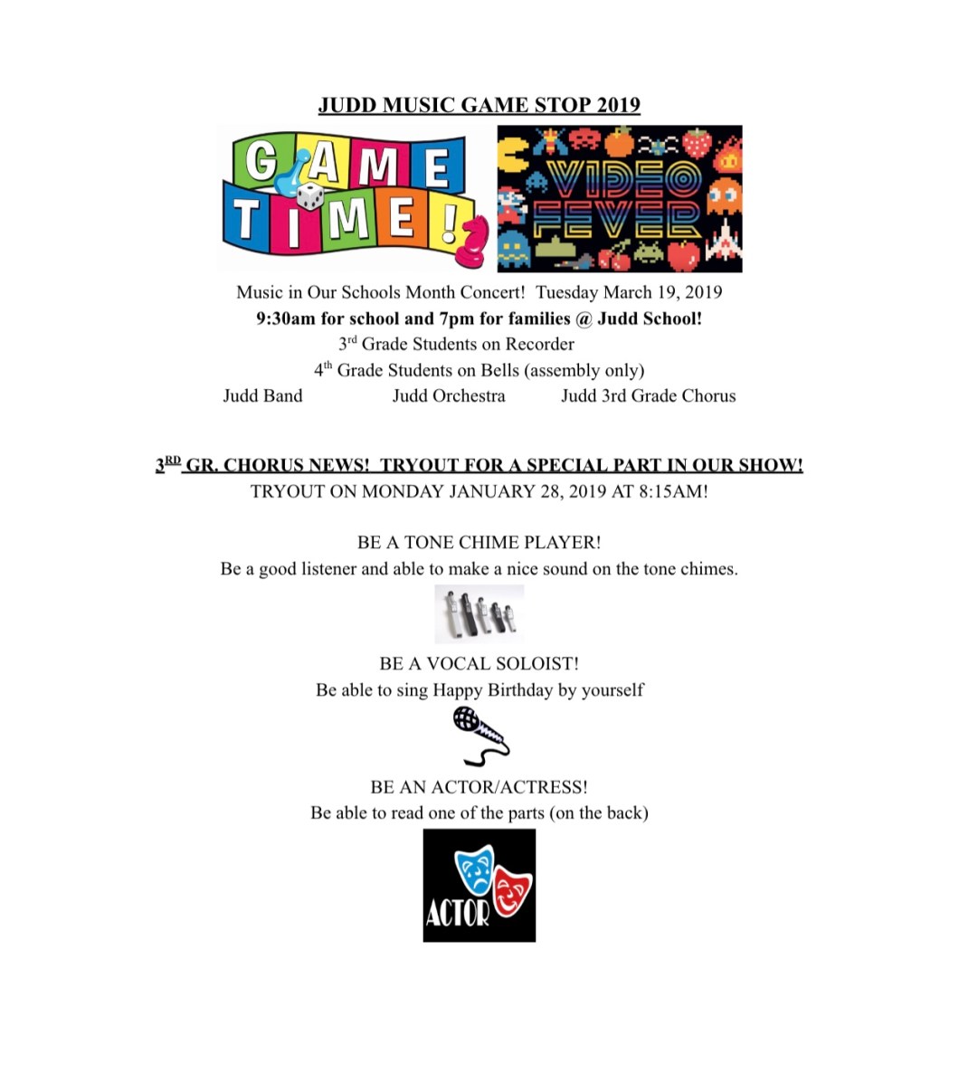 Tryout next Monday at 8:15am to be an actor, soloist or tone chimer in your March concert!