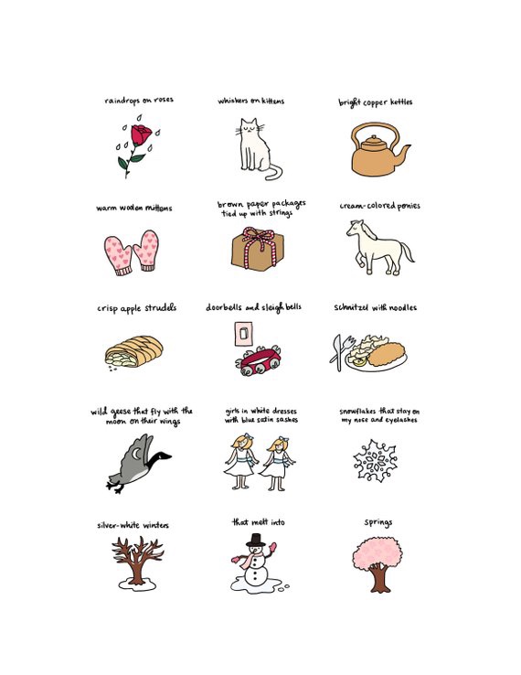 “My Favorite Things” is a show tune from the 1959 Rodgers and Hammerstein musical The Sound of Music. In the musical, the lyrics to the song are a reference to things Maria loves, such as “whiskers on kittens, bright copper kettles and warm woolen mittens”. These are the things she selects to fill her mind with when times are bad.