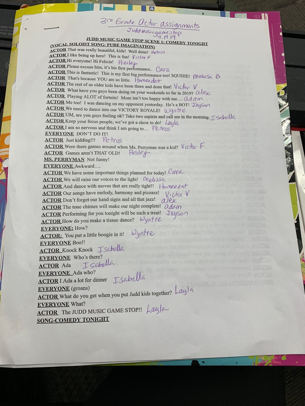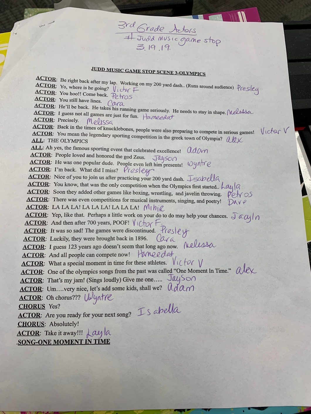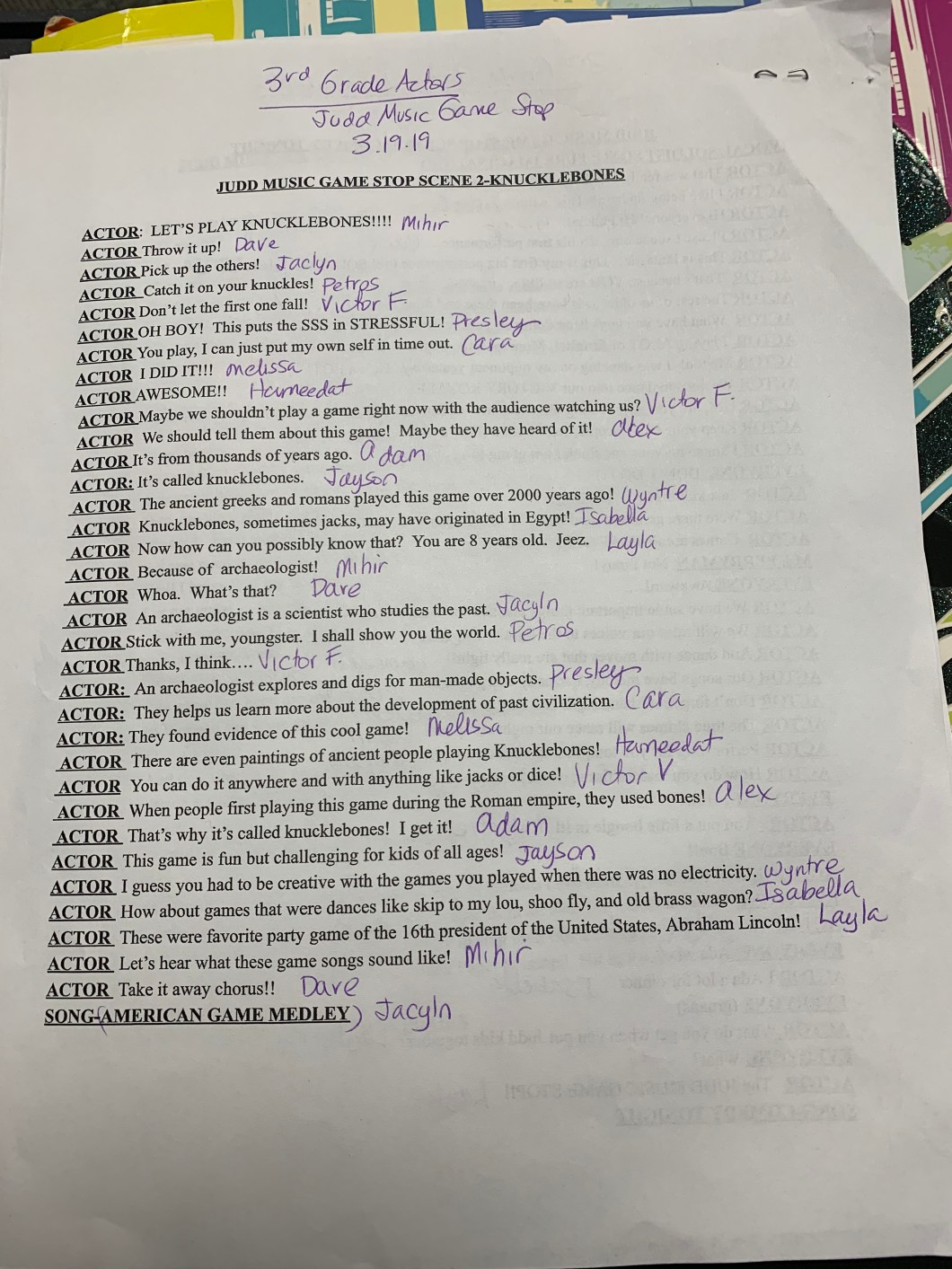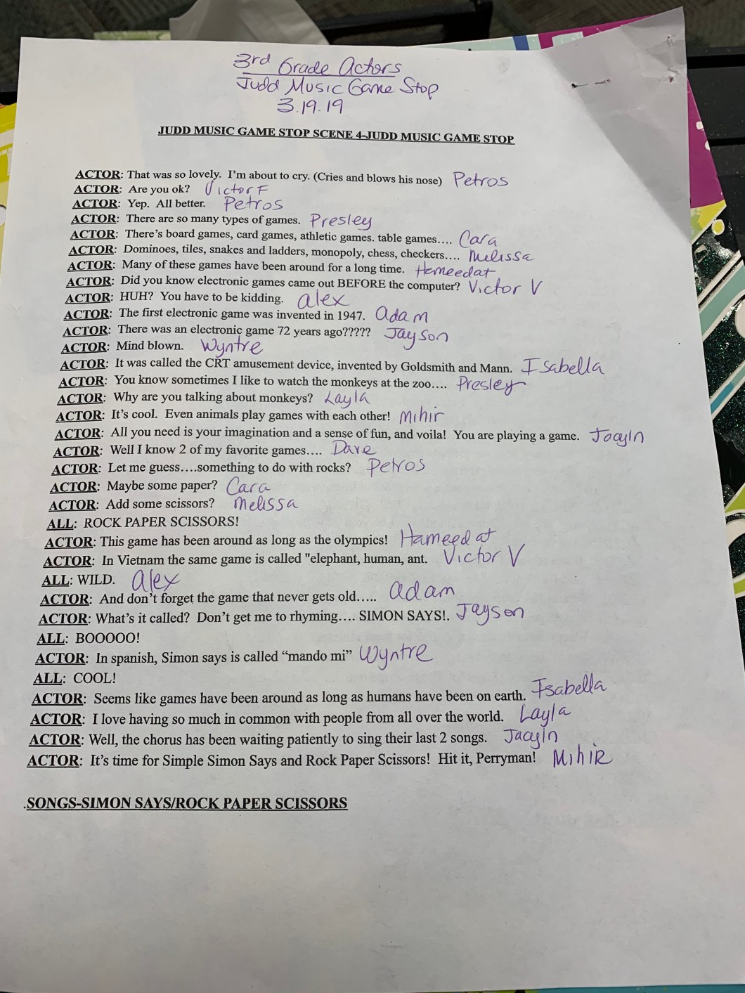 Hello Actors! These are your line assignments for all 4 scenes in our game stop show. See you next Monday at rehearsal! Make sure to practice your lines and the cue line before you come in.