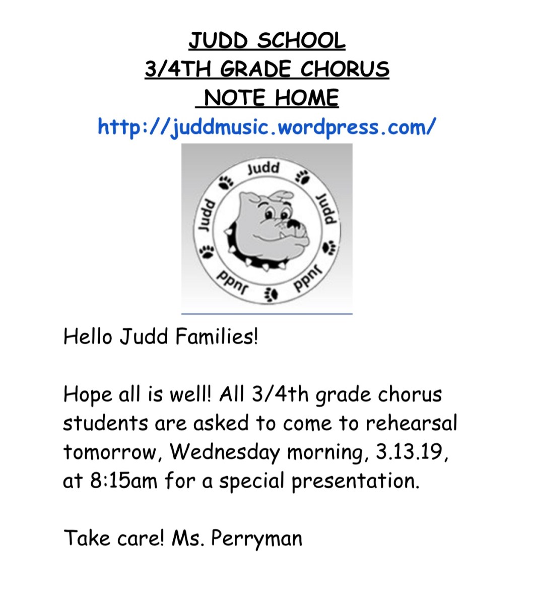 March 12, 2019 Spintoliz All 3/4th Grade Chorus Tomorrow @ 8:15am Share this: Share on Facebook (Opens in new window) Facebook Share on X (Opens in new window) X Like Loading...