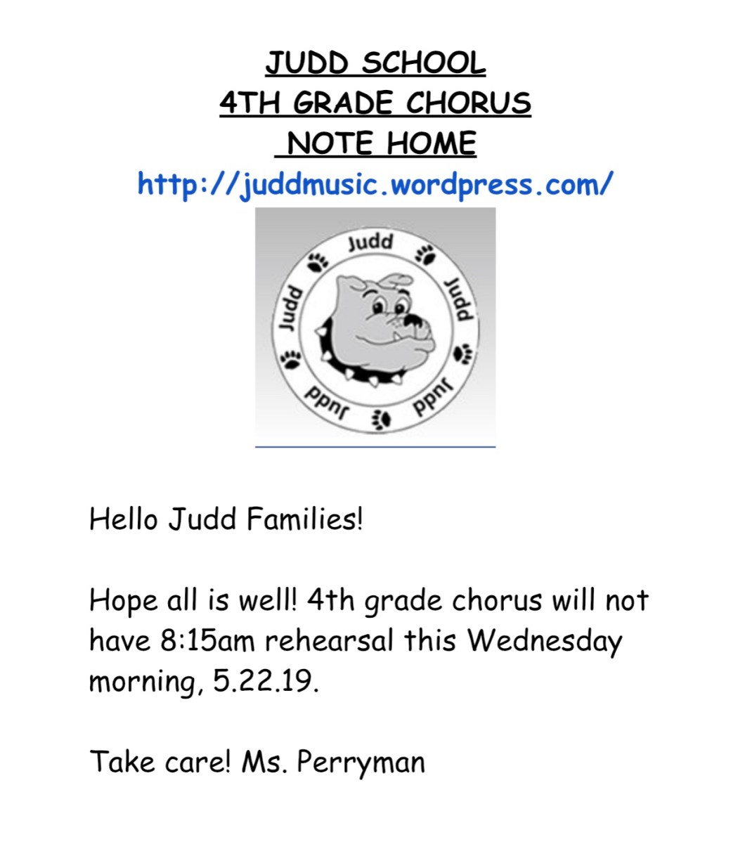 May 21, 2019 Spintoliz No Wed 8:15 4th Grade Chorus tomorrow 5.22.19 Share this: Share on Facebook (Opens in new window) Facebook Share on X (Opens in new window) X Like Loading...