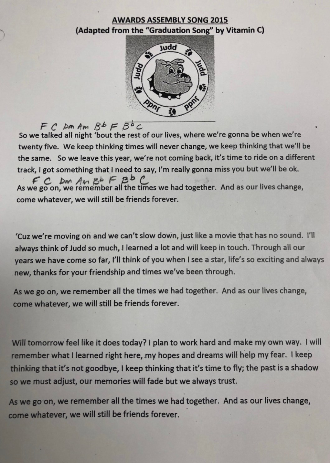 All 5th grade will sing their awards assembly song.