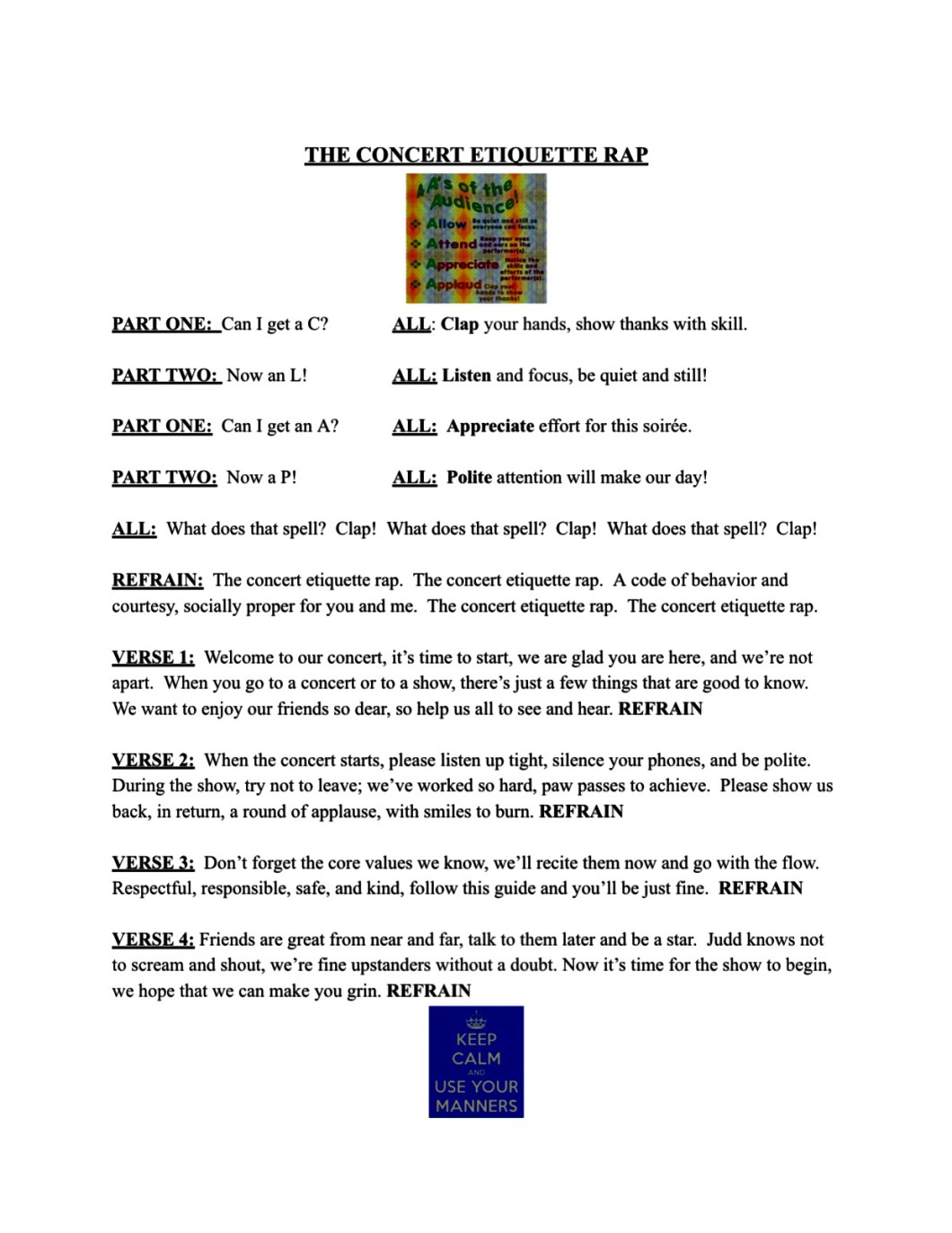 January 7, 2020January 7, 2020 Spintoliz 3rd Grade Chorus Concert Etiquette Rap! #jan2020 Share this: Share on Facebook (Opens in new window) Facebook Share on X (Opens in new window) X Like Loading...