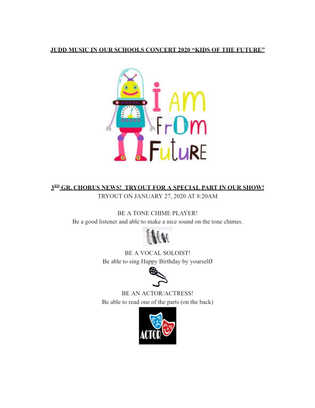 January 27, 2020 Spintoliz Make Up Audition On Day 5 (1.30.2020) #kidsofthefuture2020 One more audition, Thursday January 30th at recess. See you then! Share this: Share on Facebook (Opens in new window) Facebook Share on X (Opens in new window) X Like Loading...