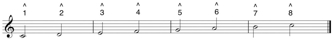 Musical scales are a pattern of notes often in a set of 7 notes. Scales have space in between the notes called intervals. They are lined up in order of how they sound.