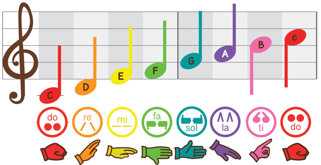 It’s fun to sing a scale with numbers or musical sign language.
