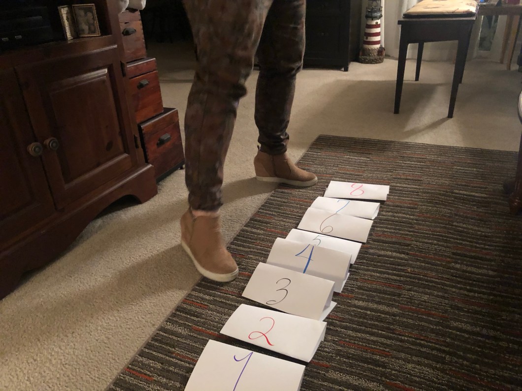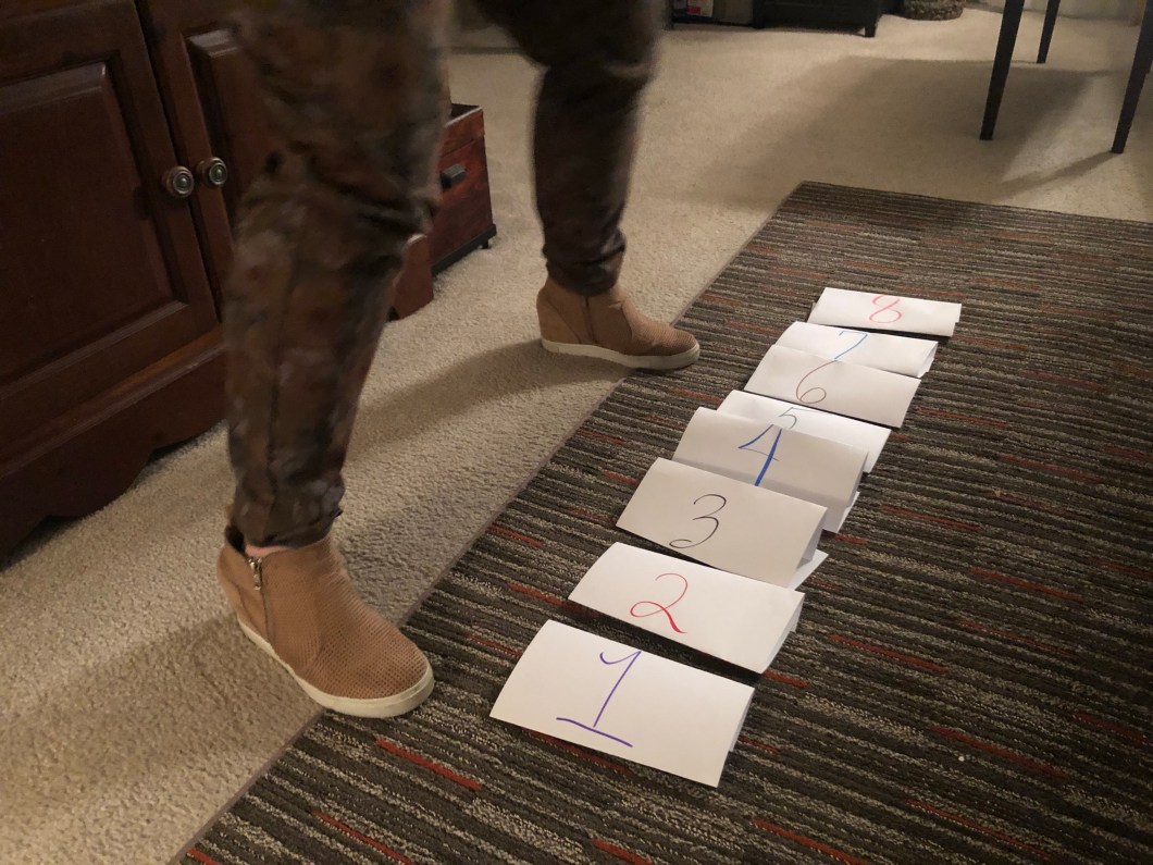 3. Lay the papers on the floor. You can make them close or far apart.