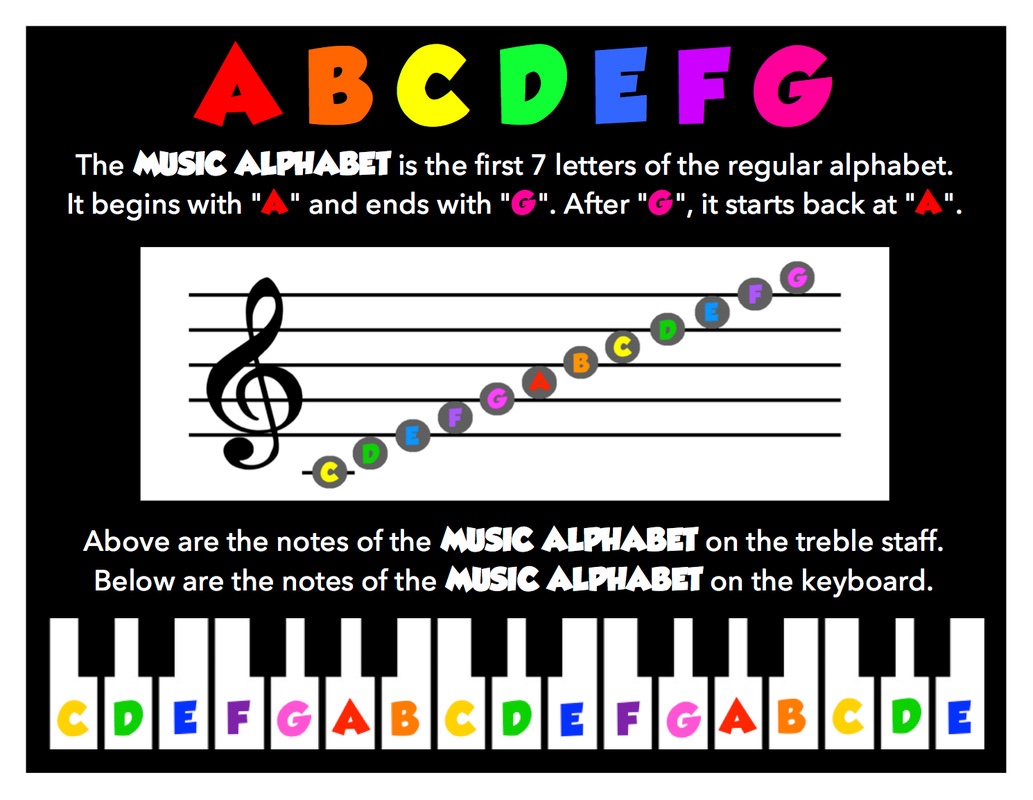 - Write down the letters of the music alphabet and the regular alphabet. Hint: one of them only have 7 letters!