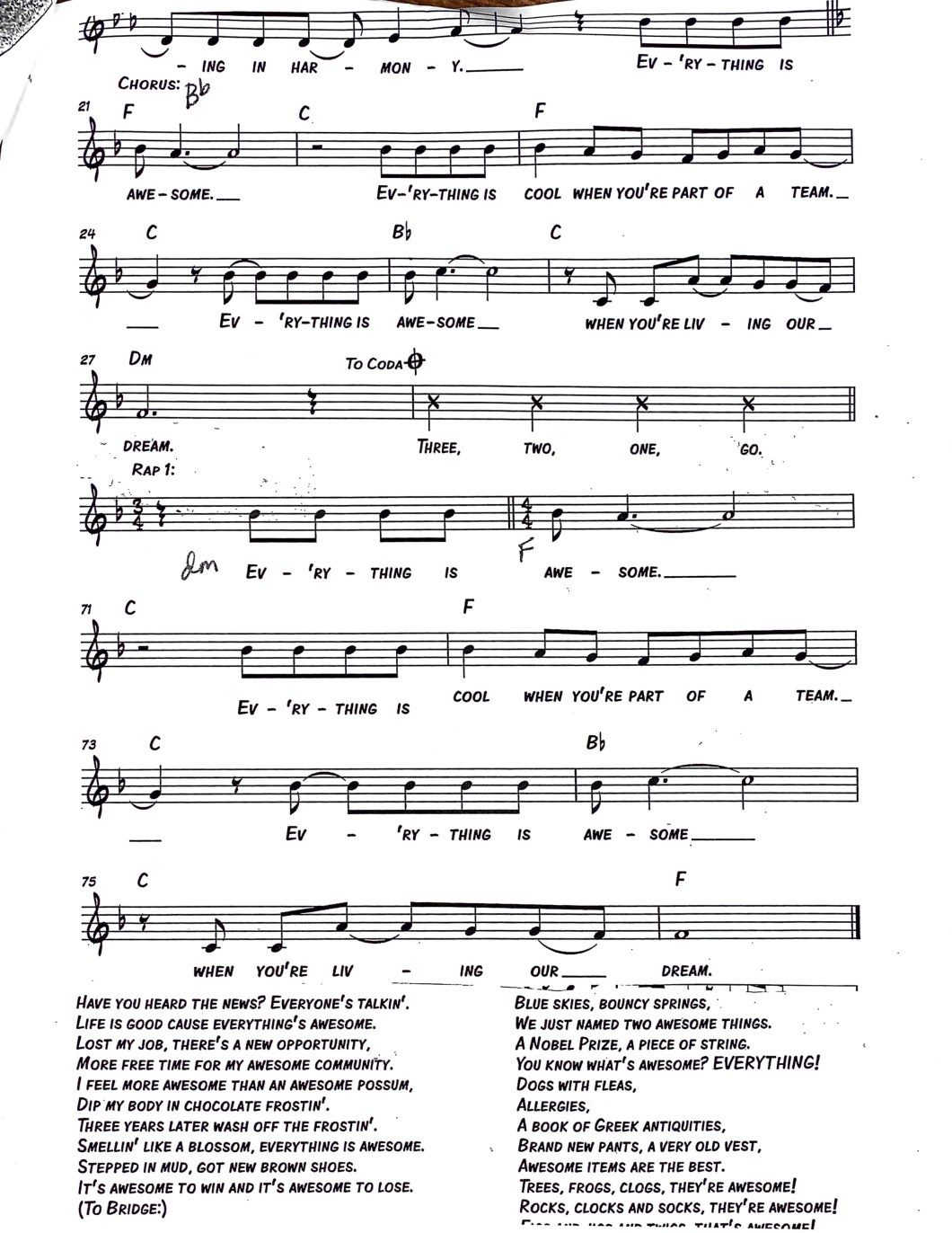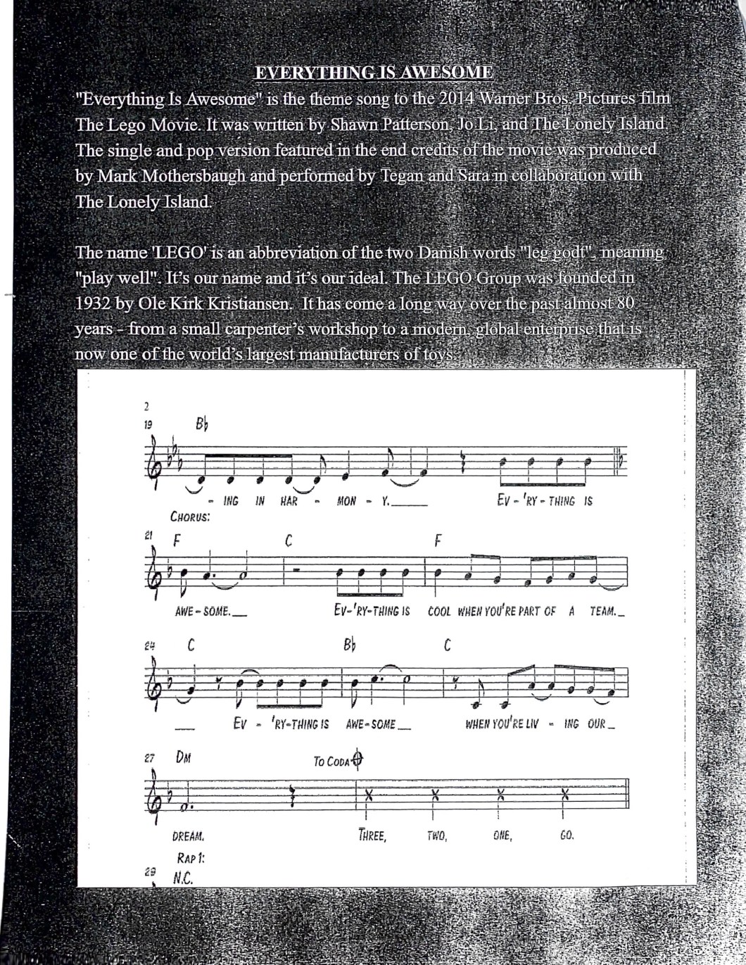 3. Our song is from the LEGO movie. Legos connect and make awesome things. We can use legos to make the notes above. See picture. You can make notes by length or adding to the lego like I did in the video.