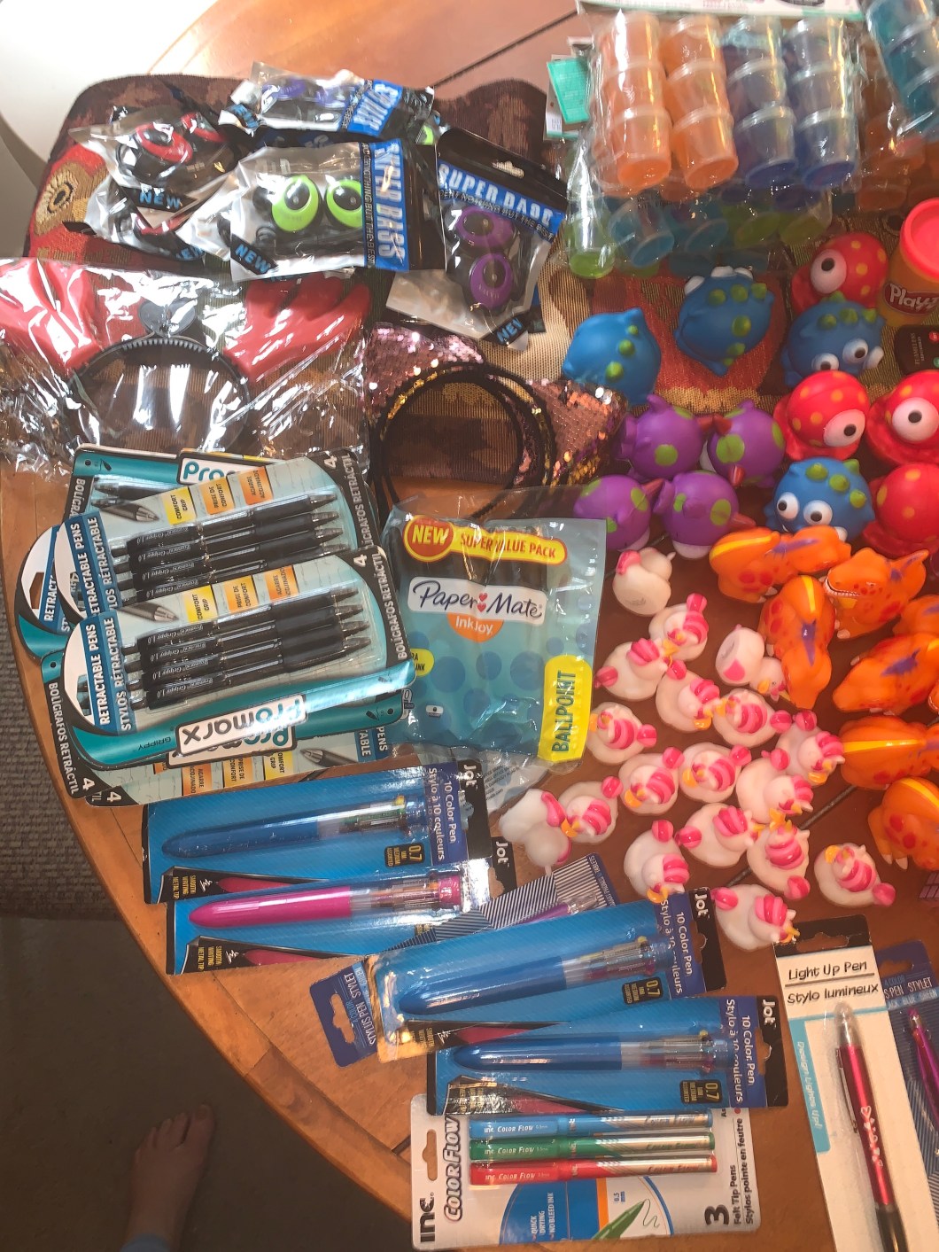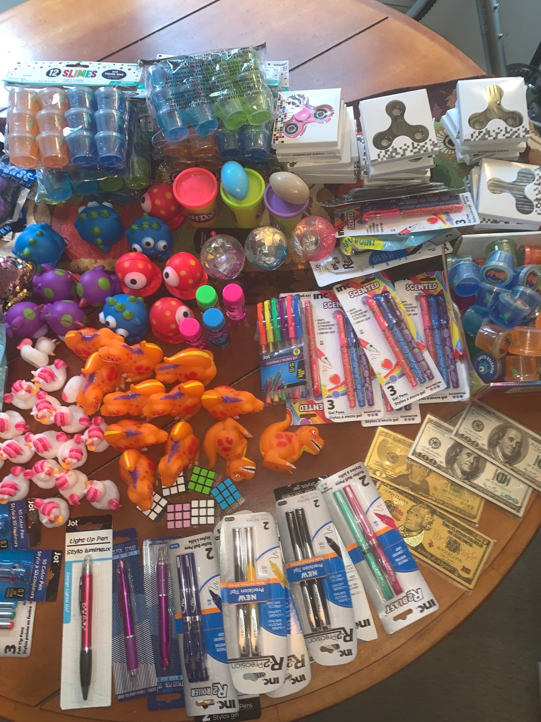 What are your top 3: Headbands, earphones, pens, pencils, smelly pens, multi colored pens, stylus, unicorns, dinosaurs, squishy creatures, slime, money magnet, spinners, bouncy balls, mini rubric cube, play doh, silly putty.