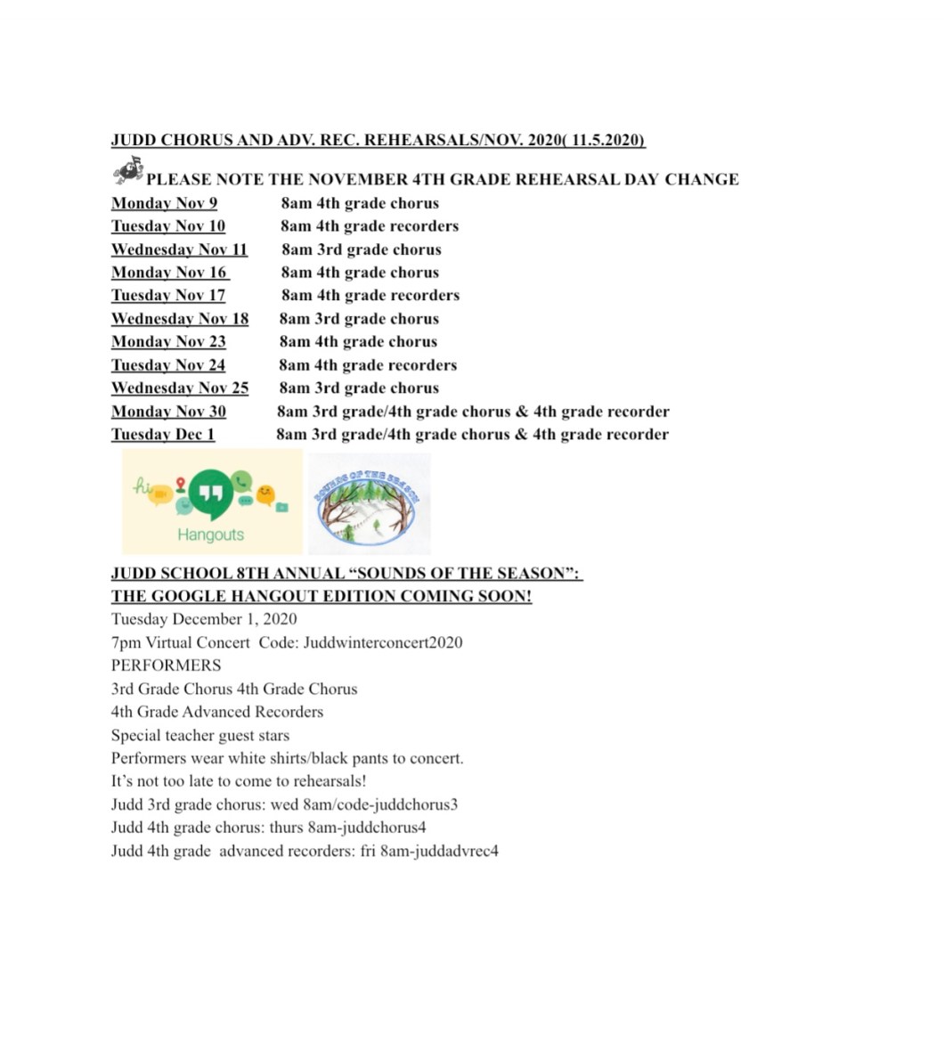 November 5, 2020 Spintoliz 3/4th Grade Chorus November Schedule (note 4th grade chorus and recorder day change) #11052020 Share this: Share on Facebook (Opens in new window) Facebook Share on X (Opens in new window) X Like Loading...
