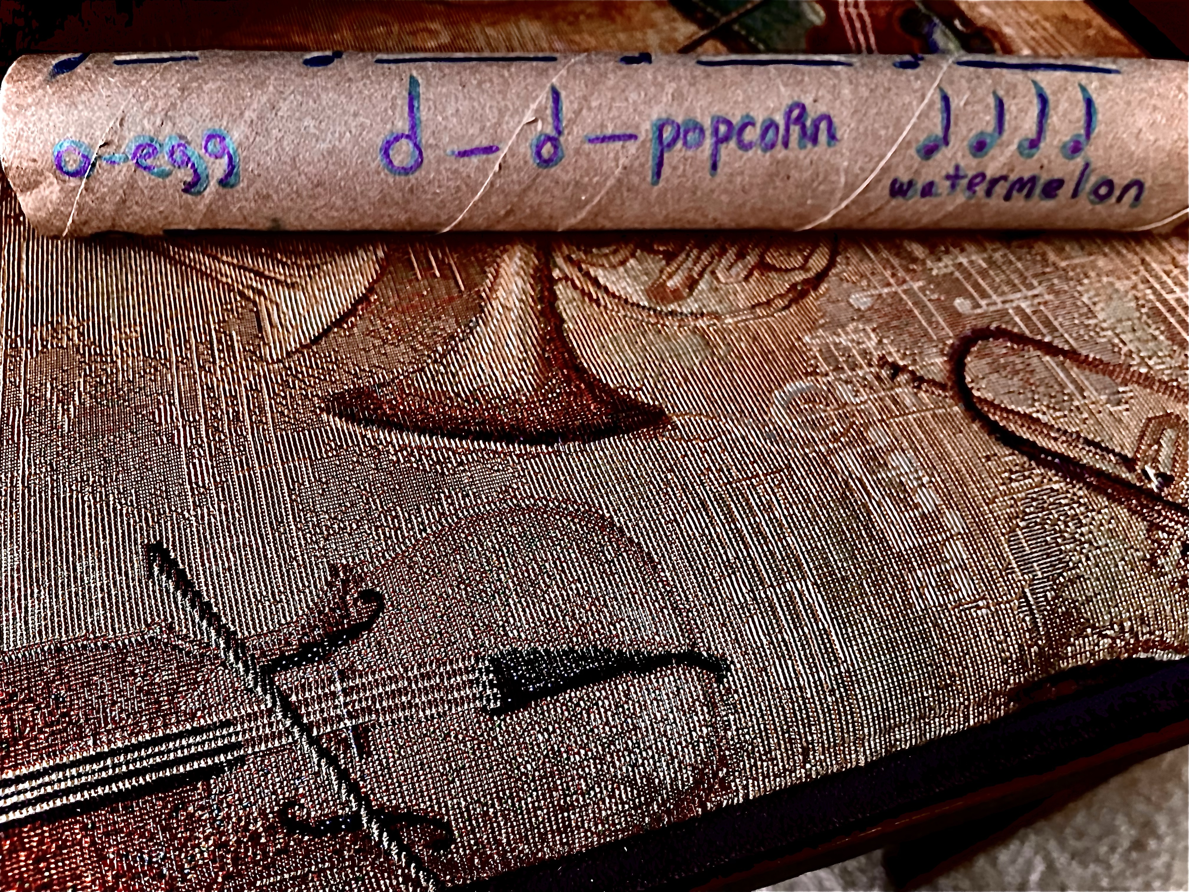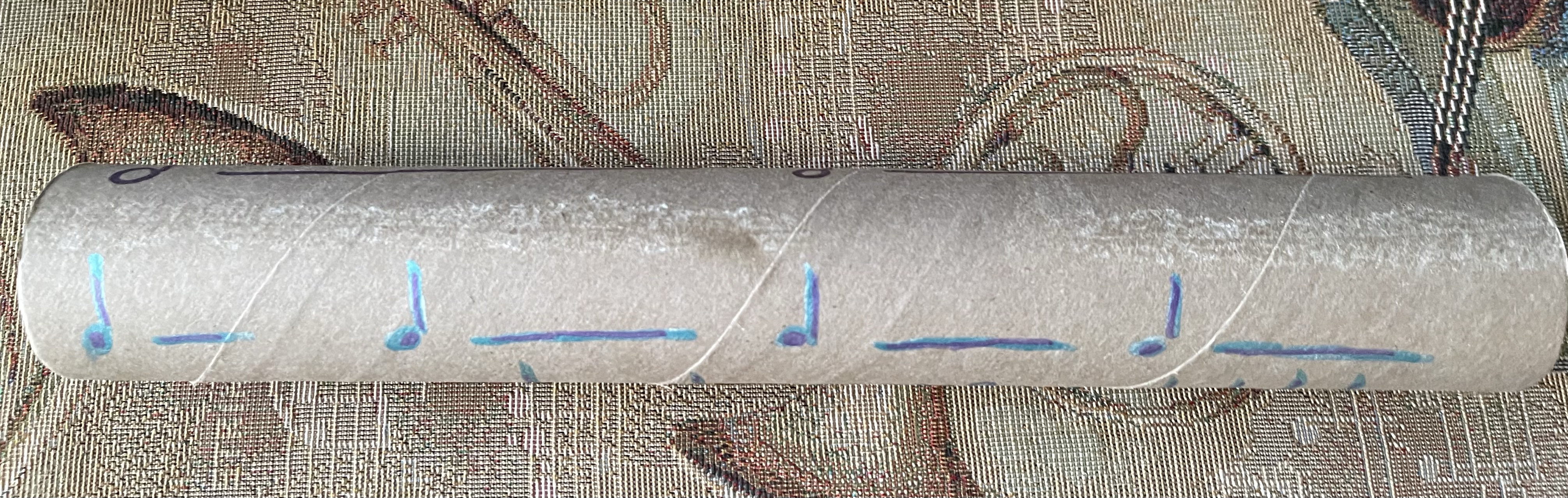 Music is written down using notes on a staff in different directions and with different lengths. You read music from left to right.