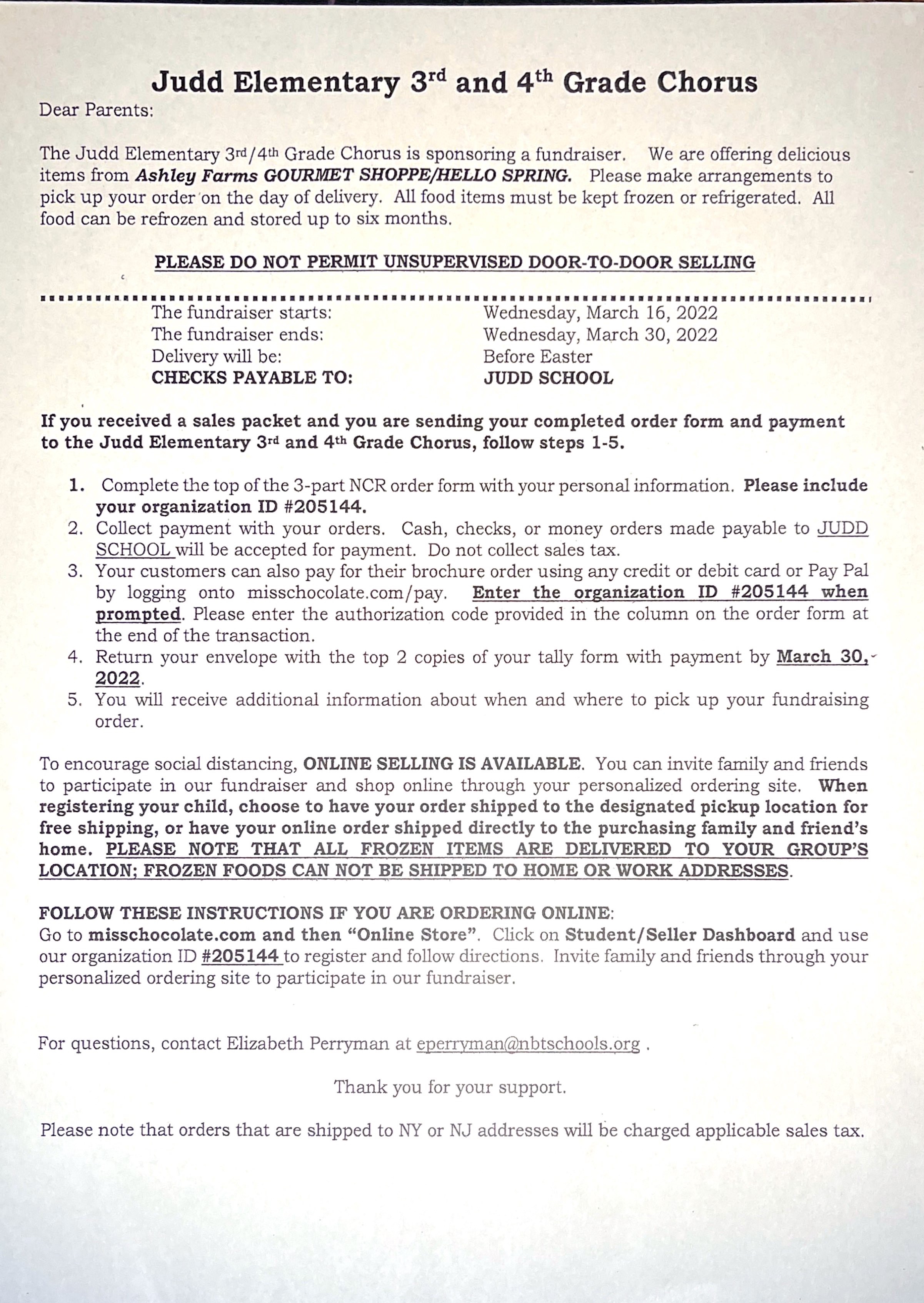 All Judd students are invited to sell and purchase items. We are offering delicious items from Ashley Farms gourmet shoppe/hello spring (brochures below).