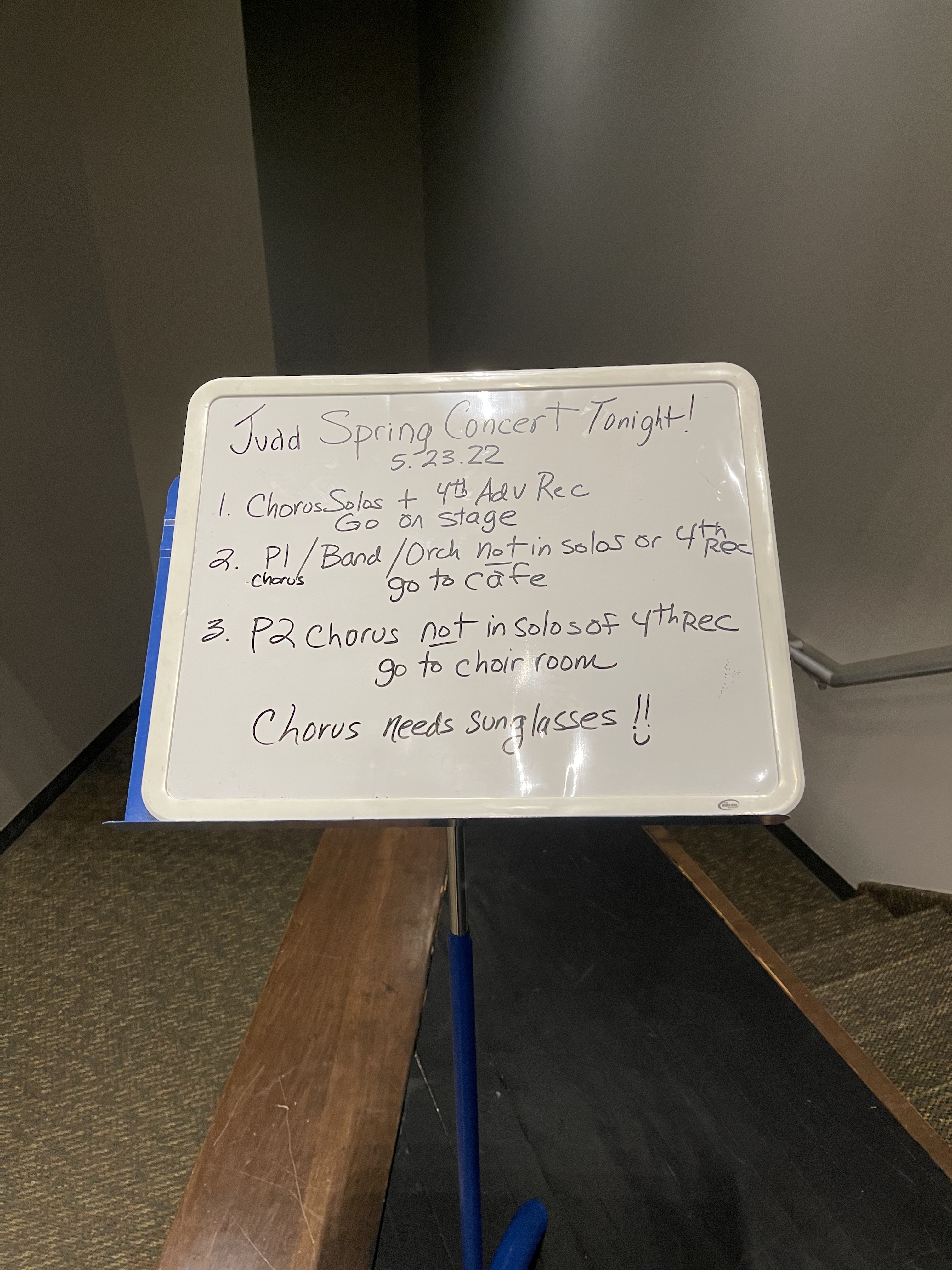 - Band/orchestra is before chorus so they should go to the cafeteria with their instruments