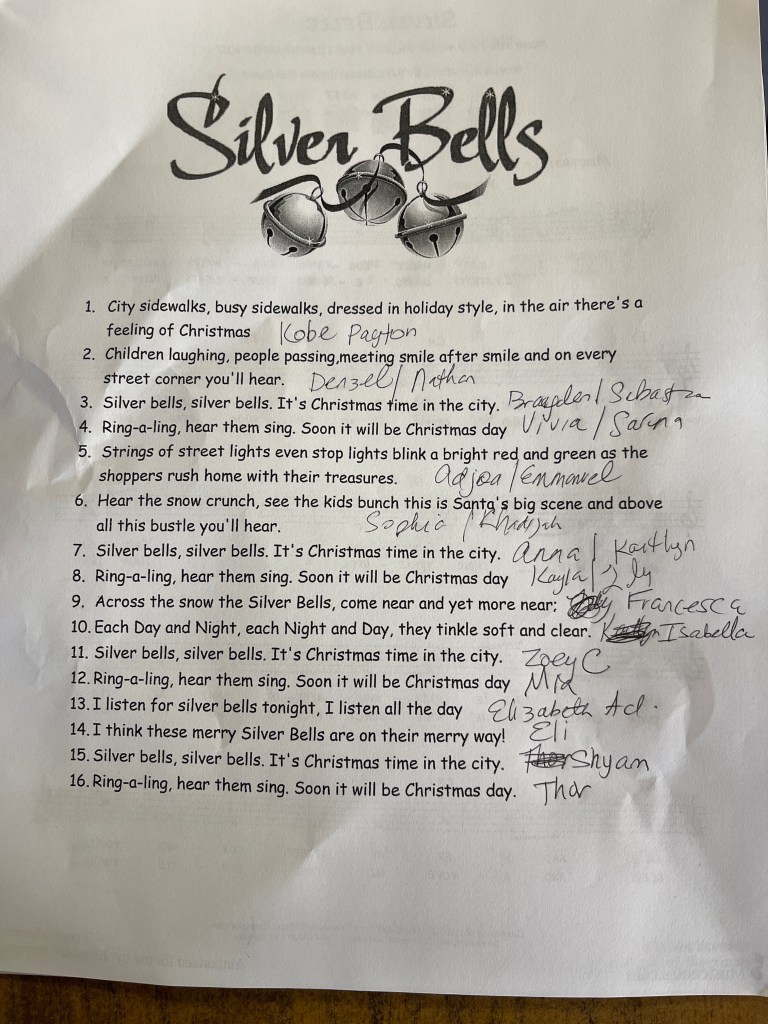 Kobe, Denzell, Brayden, Vivia, Adjoa, Sophia, Anna, Kayla, Payton, Nathan, Sebastian, Sarina, Emmanuel, Khadijah, Kaitlyn, Lily, Francesca, Isabella A, Zoey C, Mia, Elizabeth Ad, Eli, Shyam, Thor