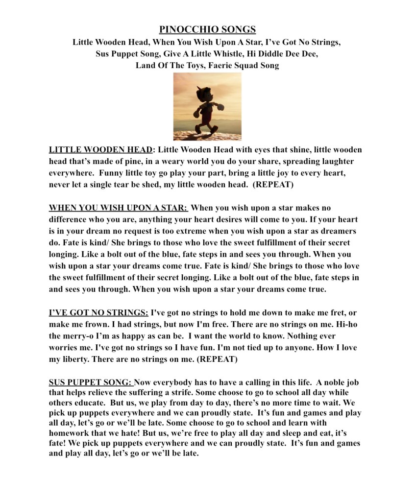 January 12, 2024January 12, 2024 Spintoliz Pinocchio Songs with recording #12024 Script: https://drive.google.com/file/d/1u4oE_F8qITga_vYX8qeplQ6V-4ZcBhmE/view?usp=drivesdk Share this: Click to share on Facebook (Opens in new window) Facebook Click to share on X (Opens in new window) X Like Loading...