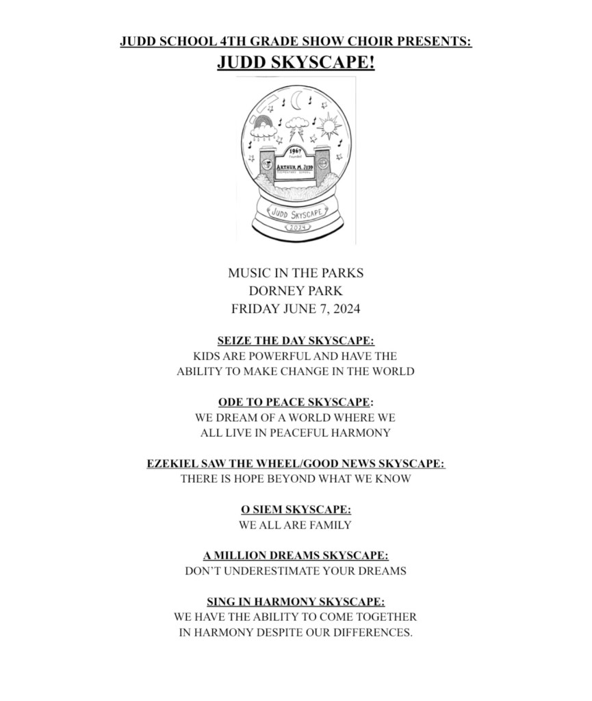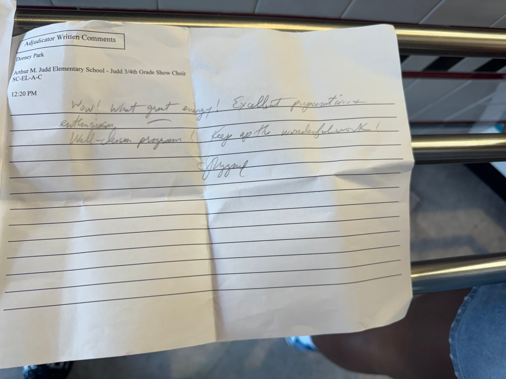 Great job 4th grade chorus on your excellent rating and Anthony Disano on winning outstanding soloist!! So proud of you all!! Wonderful job on Judd Skyscape 2024!!