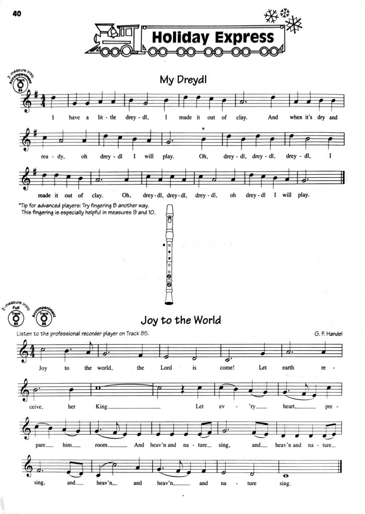 October 11, 2024November 29, 2024 Spintoliz Advanced Recorders Concert Songs #2024 (Hot cross buns, merrily we roll along, ode to joy) Jingle bells Dreydl Song Share this: Click to share on Facebook (Opens in new window) Facebook Click to share on X (Opens in new window) X Like Loading...