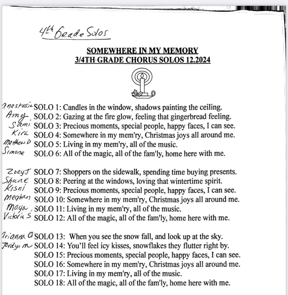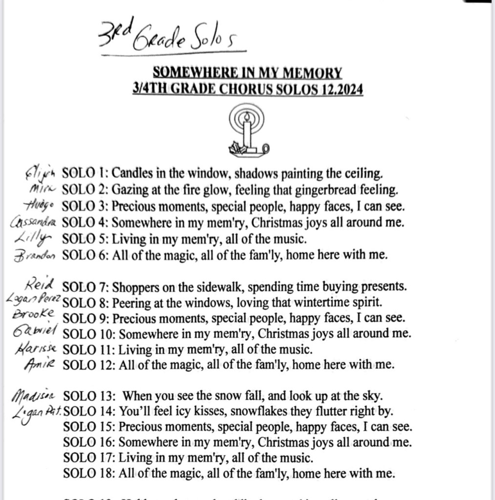 December 2, 2024 Spintoliz 3/4th solo practice #122024 3rd grade rehearsal: 4th grade rehearsal: Share this: Click to share on Facebook (Opens in new window) Facebook Click to share on X (Opens in new window) X Like Loading...