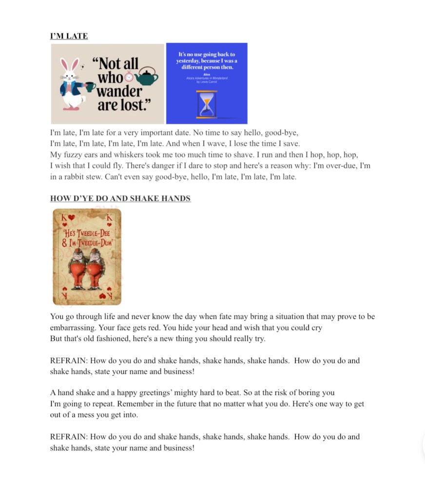 January 9, 2025 Spintoliz Alice In Wonderland Song Rehearsal Share this: Click to share on Facebook (Opens in new window) Facebook Click to share on X (Opens in new window) X Like Loading...