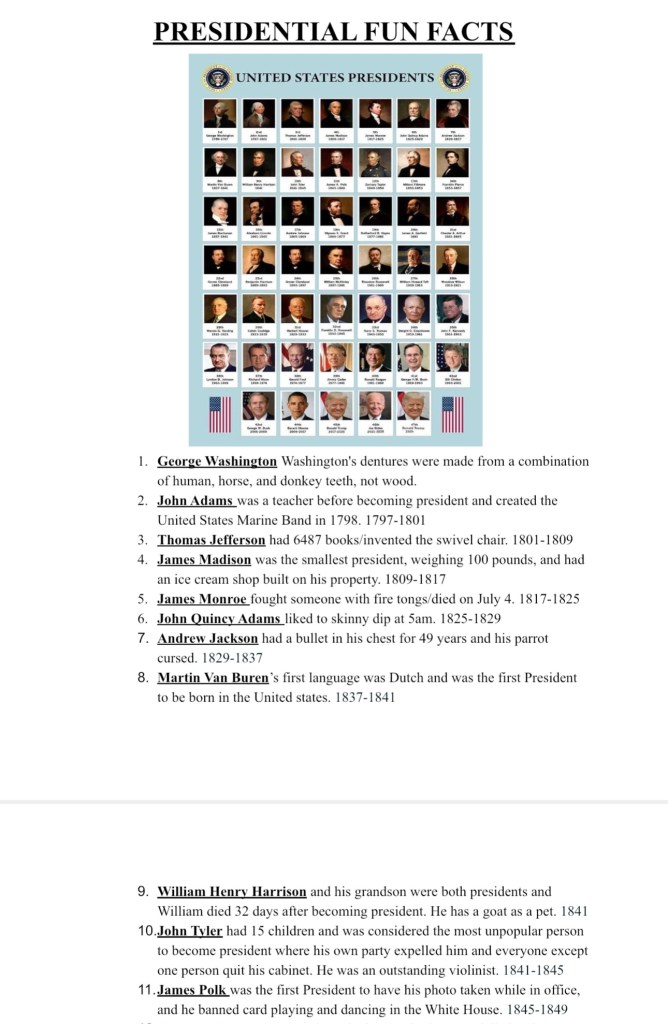 January 27, 2025January 28, 2025 Spintoliz President’s Rap 1-11 Fun Facts Share this: Click to share on Facebook (Opens in new window) Facebook Click to share on X (Opens in new window) X Like Loading...