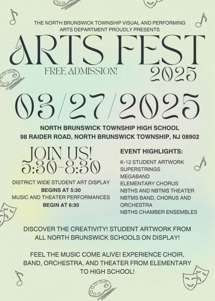 EXCITING NEWS! The 3/4th Grade Judd Chorus has been invited to participate in the North Brunswick District Fine Arts Fest on Thursday March 27, 2025! This event will include artwork from the K-12 Art Department and performances by the Elementary Choruses, MegaBand, SuperStrings, NBTMS Band/Choir/Orchestra, NBTMS Drama Club, NBTHS Alchemists, and NBTHS Chamber Ensembles. Performances will take place throughout the evening, with the art walk leading parents and spectators around the building. Please fill out the permission slip and return to Ms. Perryman no later than Thursday March 13th at 3pm.