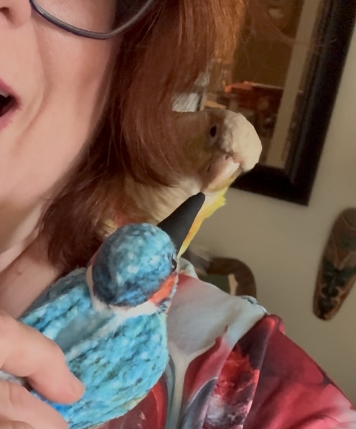 June 22, 2025 Spintoliz Kiwi kisses her hummingbird toy #kiwi #birds #parrot #greencheekconure #pettoys #hummingbird Share this: Click to share on Facebook (Opens in new window) Facebook Click to share on X (Opens in new window) X Like Loading...